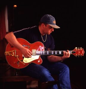 Jim draws deep inspiration from the 1950s — a golden age in his eyes for singers and musicians. He especially admires Eddie Cochran, Dion, and Elvis Presley as foundational influences. Since 1991 he has relied on his beloved Gretsch “G-Brand” guitar (it appeared on the cover of the Movin’ On album), and earlier played a Gretsch “Country Gentleman” before it was tragically damaged in transit. In his Bristol studio, he also owns a Fender Telecaster along with a Gretsch 6120 RHH, and his live rig has included a Fender Tonemaster amp with a Fender 212 cabinet. His exacting ear and tone are matched by his commitment to great gear.