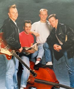 Over the years Jim has not only delivered electrifying live performances across Europe and North America, but has also worked extensively in the studio writing, producing, and recording. The Firebirds have released numerous albums across rock ’n’ roll, doo-wop, harmonies, and vintage styles. They’ve supported or performed with names such as Jerry Lee Lewis, Linda Gail Lewis, Ray Campi, Charlie Gracie, and Sleepy LaBeef. In 1992 they were chosen as the only British band at the opening of Disneyland Paris. In Bristol they participated in a memorial concert marking Eddie Cochran’s death, with Jim himself performing the role of Cochran’s last local set. Their U.S. tours included historic dates tied to the Sun Records legacy and anniversaries of Elvis.
